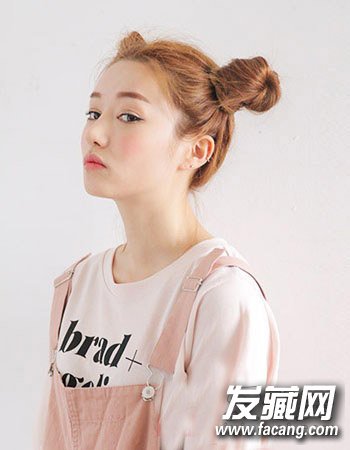 清爽的无刘海造型设计可是最短现在的夏季了,再配合这种明亮的橘黄色染发设计更添十足的活力感,简单而独特中分双丸子头盘发设计更添十足的可爱甜美风。