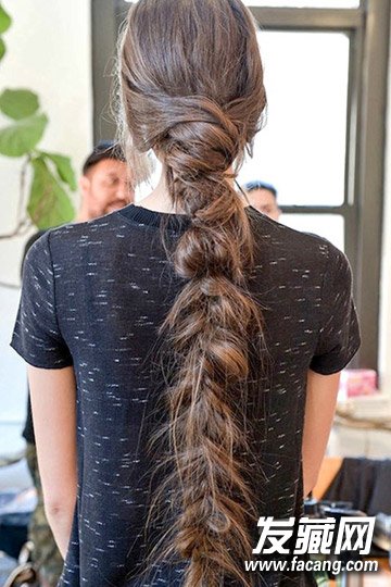 长发及腰的妹子可以尝试下这款发型,蓬松麻花辫在秀场可是很吸睛,拉扯出碎发修饰的辫子更显女神范。