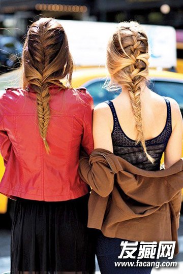 松散蜈蚣辫发型,两边不断渐入的头发增加了层次感,从脖子部分开始又开始编鱼骨辫,一松一紧,张弛有度,很闺蜜一起扎这样的发型更是吸睛。