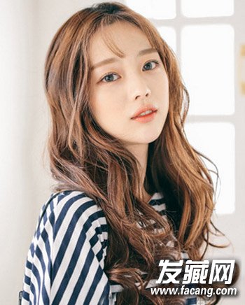 可爱的中分刘海与中分发型搭配起来,时尚的长卷发显露出个性与时尚的一面来,而且时尚的长卷发搭配上发色十分可爱的。