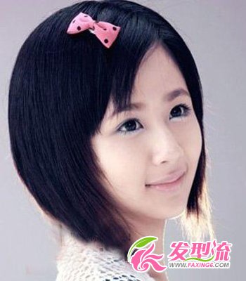 乌黑短发 乌黑的秀发给人一种最淳朴的自然美,低调又不失时尚感,突显学生清纯气质。及肩的短发有着长头发的飘逸,也有短头发的清爽。三七分斜刘海彰显出女生甜美的脸容,打造完美的脸型比例,别上个粉色蝴蝶结,好萌呦!
