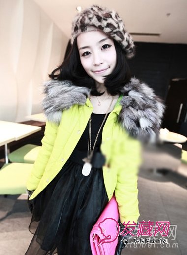 梨花头给人感觉十分甜美优雅, 没有一丝刘海露出精明的脸颊超迷人,搭配一顶贝雷帽和毛领外套时髦的潮女气质十足。