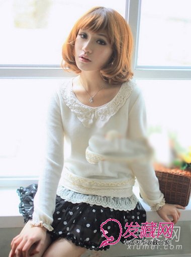 灵动优雅的短发梨花头+浓郁的奶茶色染发搭配十分甜美萝莉。超适合情人节哪天约会哦!