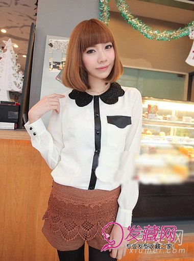 直短发梨花头十分清纯甜美,整齐刘海的搭配可爱又减龄,浅棕色的染发让你变得阳光有活力。