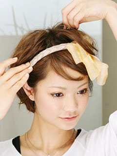 带上发箍,重点是将发箍后面的头发微微拉出,显得富有层次和空气感。