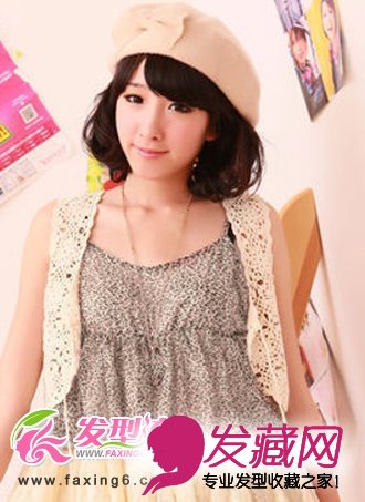 给人优雅的淑女感觉,可爱精致的帽子遮住头顶蓬松的发丝,微微露出的斜刘海缩短了脸型,蓬松的发丝内卷外翘起到很好的瘦脸效果,这款发型很适合脸型偏大的女生们哦!
