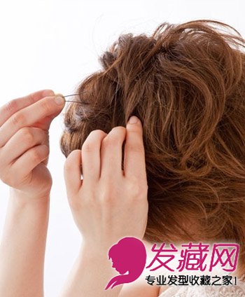 把短发拨到一边,斜斜地固定好,如图所示。