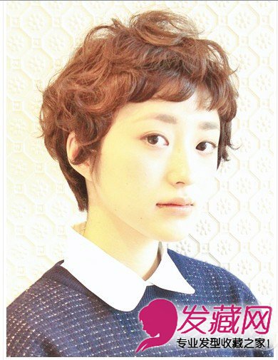 这样的发型也是偏向于韩式的风格。如果你是随性的中性风,将短发弹出这样的波浪卷度,配合上极短的齐刘海造型,立即展现出个人魅力喔。