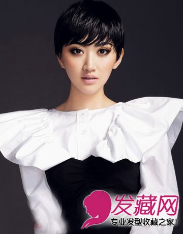 娇媚的女生齐刘海短发型,稀疏感的刘海发型搭在眼眉间,穿搭个性的斗篷群,大气时尚尽显。