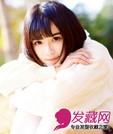 齐刘海的短烫发设计,打造出呆萌的感觉,有很好的减龄效果,深栗色的染发凸显出白皙的皮肤,将小女生的甜美气质表现得淋漓尽致