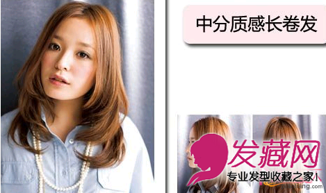 中分的长刘海是拯救国字脸或者圆脸MM的必备刘海~中分长刘海可以从视觉上将脸缩小,将圆脸的肉肉遮盖和国字脸分明的轮廓模糊,效果神奇吧~配合内卷的发尾,令发型很有层次感,质感很好,不像一般的卷发那样普通,很有个人的特色哦~