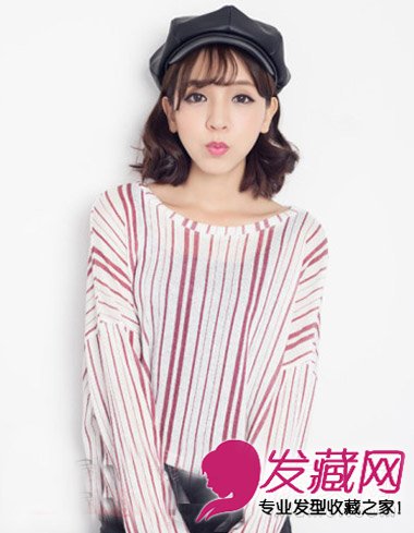 ,一款贝雷帽与蓬松的短发烫发形成时尚感,简单的条纹前不仅显瘦而且个性十足,甜美动人哦。