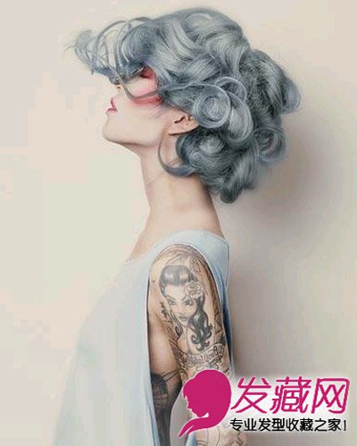 超有个性的一款短发发型,带点蓝色和灰色的染发颜色超显梦幻气质,如云朵般的大卷发设计更是格外抢眼,美的很不实际。