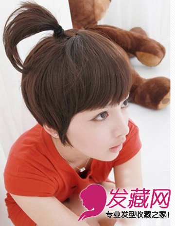 可爱的苹果头造型不仅是韩国明星的最爱而且也是许多萌妹子的扮嫩法宝哦,头顶扎一个帅气的小马尾,柔顺的碎短发尽是俏皮可爱风。