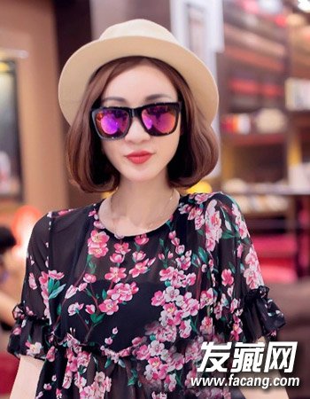 利用的是时尚的偏分造型设计来增添女生的优雅气质风,而简单的内扣中短发波波头造型设计与时尚的棕色染发相搭,一副简单的墨镜更添潮流气质感。