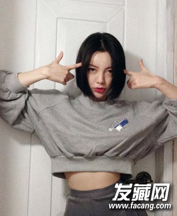 很有时尚俏皮气息的一款韩式中短发发型,短发发尾微微烫卷内扣,中分短发韩味十足。