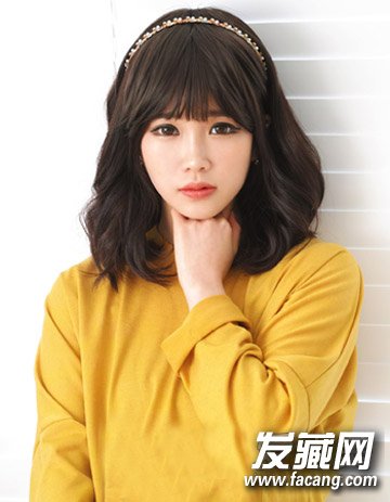 平刘海与中短发烫发搭配起来,不仅时尚而且有个性,发尾的内扣与发饰搭配起来显露出无比的时尚感来,清爽且时尚。