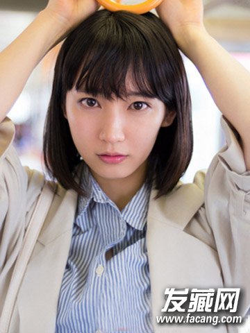 甜美的齐刘海中短发发型,乌黑中短