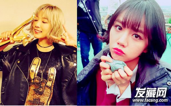 不要以为圆脸剪短发就会胖起来,刚好在脸下缘,靠近下巴处的长度最显脸小,发尾能在无形中修饰脸部线条及颧骨。