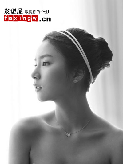 将头发全部挽到脑后扎成一个马尾,然后用卷梳将头发打蓬松,再挽成一个漂亮的花苞。如果头发不是很服贴可以用发胶轻轻抹在花苞根部,然后选择一个长长白色发绳从流海一直锢到后面,再交叉锢过来然后在中后侧轻轻打成一个漂亮的蝴蝶结,如果你不喜欢蝴蝶结可以拿一个大大发饰卡在蝴蝶结上,再配上漂亮的耳钉,哇!尽显迷人高贵!那还等什么?快点行动吧!