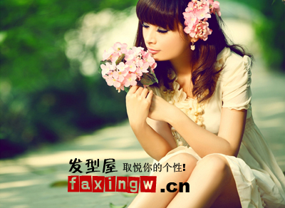 可爱的齐刘海,长及眼睛的刘海长度微微向内弧度,让脸颊更加的小巧可爱,散落胸前的螺旋卷加上粉红色鲜花头饰更是散发青春气息。