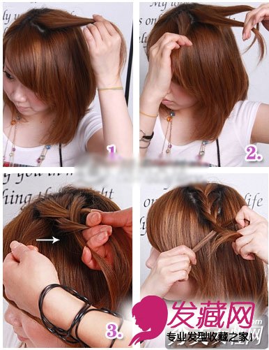 3.沿着刘海发际线的方向编麻花辫,编的过程中,每一次都从左右加入附近的少许头发,让辫子可以紧贴头皮。