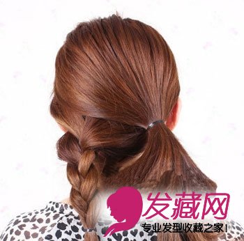 把麻花辫围绕马尾一圈,最好能把皮筋遮盖好。