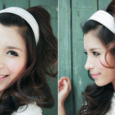 白色,纯洁的白色,给人一种非常干净清透的感觉,在发型上用白色的发带来早就整款发型,会给人一种干净甜美的感觉。