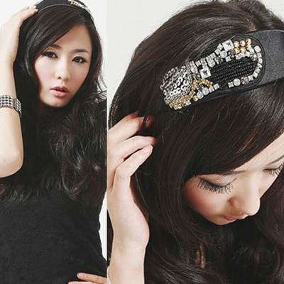 黑色的发箍上面搭配上小碎亮片以及珠子的配饰,并不繁复,反而给人一种非常硬朗的感觉