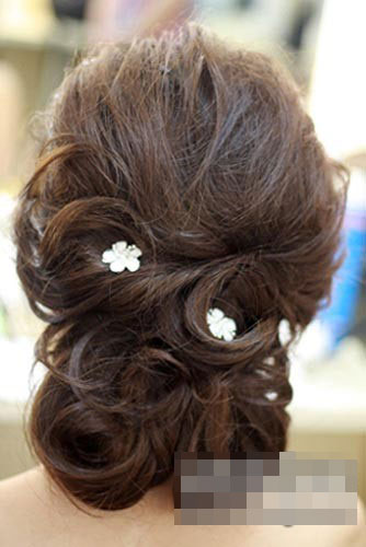 高贵的卷发 发髻,点缀散落的白色小花,熟女感十足。