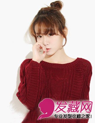 把不太长的头发在发顶随意绑个小丸子出来,是不是很有趣,灵动的薄刘海遮住额头,乖巧学生风,清爽又好看。