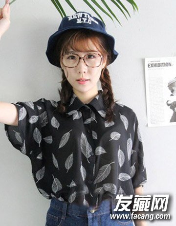 甜美的双麻花辫编发与空气刘海的设计再搭配上帽子拗出别致的时尚感来,而且整个造型勾勒出时尚的休闲感。