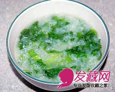 做法:将菠菜洗净,煮去涩味,切段备用。再将白米淘净,放入锅内,加上适量的水熬至米熟汤稠,再将菠菜放入粥内,继续熬至粥成。空腹时服用,每日一次。将薏米泡软、煮熟,再加上绿豆煮熟