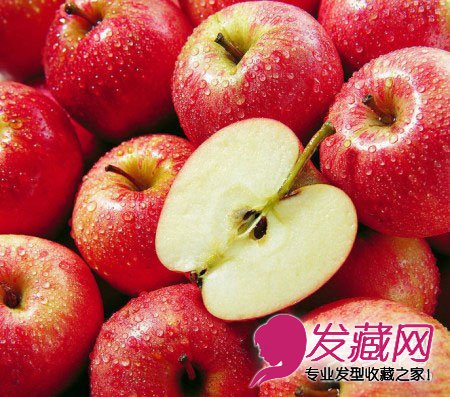 苹果 苹果中含有对肌肤和头发所需的大量营养,其中苹果酸可以防止皮肤和头发的干燥,另外苹果之中的营养成分还能够抑制头皮屑的生长,有镇定头皮和止痒的功能。
