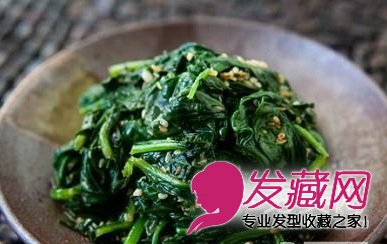 从多方面考虑,菠菜对身体有很多好处,其中包括头发健康。在当中扮演重要角色的,正是叶酸和铁元素。叶酸属于B族维生素,帮助血红细胞的生成。菠菜中丰富的铁元素,有助于血红细胞对氧元素的运输。铁元素不足,最常见的就是贫血症,细胞得不到充足的氧分,难以正常运作。后果严重的话会危及身体其它部位,身体虚弱、容易疲劳、甚至掉头发。曾有一项大型研究,通过对铁蛋白的检测,发现大多数头发脱落严重的绝经前期女性,她们体内的铁元素含量偏低。而女性进入生育期,由于月经失去大量的血,铁元素含量会比之前大大下降。在更年期前夕,建议女性多补充含有铁元素的综合维生素。