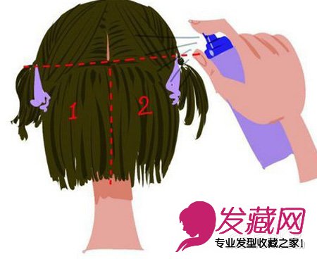 用发卡将后面的头发如图所示挽起,用喷雾喷洒内层秀发。