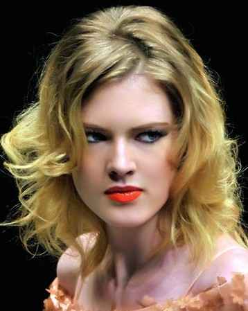 Step3 从眉骨部分开始,将以下部分头发用大号卷发棒顺时针向外卷成大卷,并用沾有发泥的双手向上边托边抓,使其充满空气感。