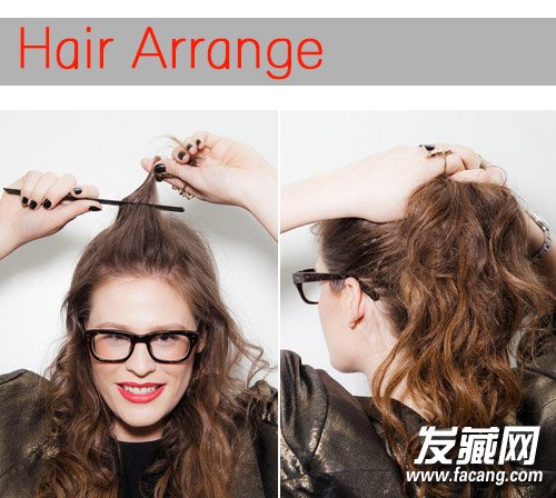 将所有头发烫卷,卷发不容易出油,也可以更好的维持造型,即使一天不洗也不会憋塌下来。用手扎起高高的马尾,