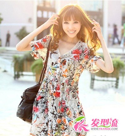 阳光少女的青春卷发,卷卷的秀发弧度,自下颚的位置加入发型内部,轻盈动感,突出年轻女生的活力与朝气,元气又精神,明亮的双眼在齐刘海的衬托下更显可爱和甜美。