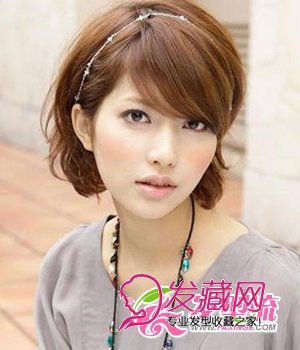 覆盖式的斜刘海,有效减少了脸颊的面积,瞬间瘦脸。清新自然的短卷发,倾向于自然卷的弧度,透出无尽的柔美,增加女生的亲和力。棕色系的发色和精致小发箍,打造潮女范儿。