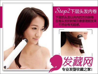 下层的头发以向内的方向做卷,在卷头发的时候注意要理论发束,不然会有毛糙感。