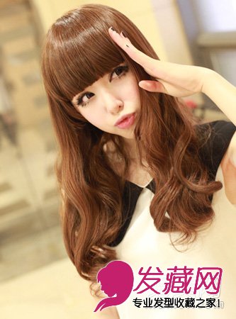 韩式女生齐刘海长卷发 修颜卷发时尚瘦脸(8)