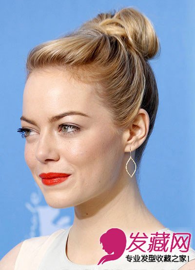 Emma Stone的丸子头非常光滑,看起来就很凉快。