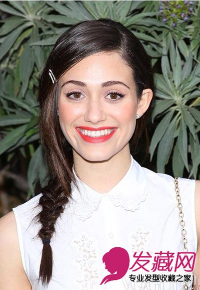 在最近出席的自己筹款活动中,像Emmy Rossum这样在自己的侧辫上加上几个彩色的发卡也是不错的选择。