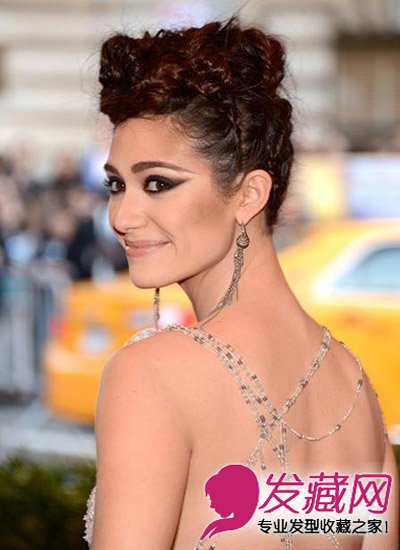 发辫也能打造一个非常有纹理感的顶髻,而且带着丝丝摇滚风格,来看看Emmy Rossum在今年met ball上的发型吧。
