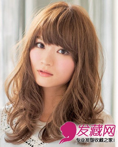 圆脸适合什么发型 咖啡色的中长波浪卷发(5)