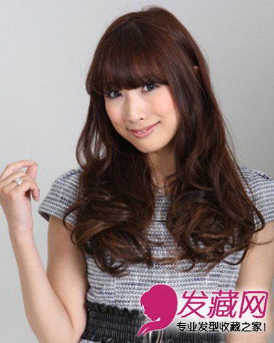 顺直的及眉齐刘海搭配长卷发修颜效果完美,时尚的大卷发尾,非常有范儿。