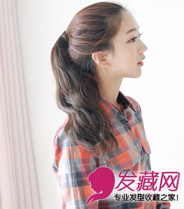 将头发全部绑起,高高扎起马尾,棕色挑染加上微微烫卷的马尾辫子展现青春活力无限。