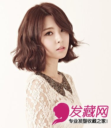 韩式烫卷发发型 中分刘海黑色中短烫卷发(9)