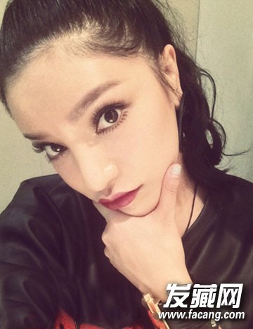 化上浓重妆容凸显一双无辜的大眼睛,清爽高